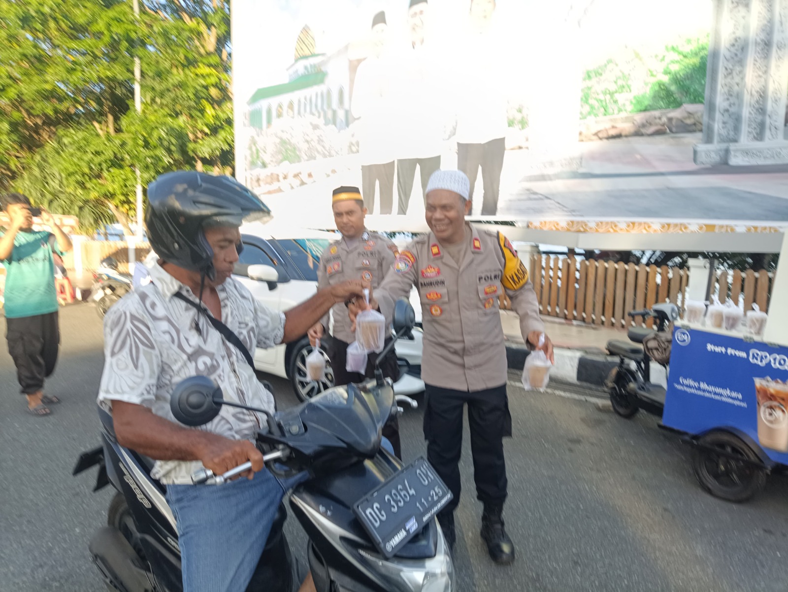 Takjil yang dibagikan berupa minuman kopi hasil produksi pelaku UMKM Binaan Satuan Binmas Polres setempat.